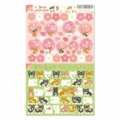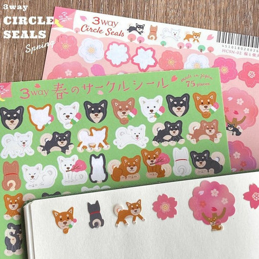 Spring Pattern 3-Way Stickers - Cherry Blossoms & Shiba Inu