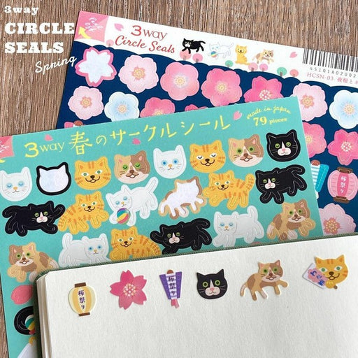 Spring Pattern 3-Way Stickers - Cherry Blossoms & Cats