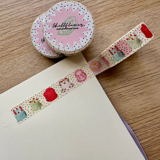ShellflowerOriginal price $7.90 - Original price $7.90Original price$7.90$7.90 - $7.90Current price $7.90in stockA super cute polka dot washi tape with repeating cakes from a collab with cake maker, The Confection Club based in Liverpool, UK. This washi tape c...
