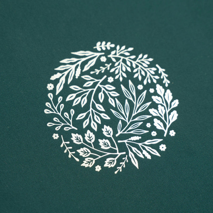 Introducing Archer & Olive's Signature Floral notebook, featuring a classic circular floral design hand stamped in silver foil on a deep teal cotton cover. This timeless notebook design has special gilded pages and an inside cover design.