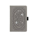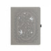 The Songbird notebook provides a peaceful space to explore your thoughts, dreams, and daily plans. It features an elegant floral design, part debossed and part hand-stamped with white foil on a warm grey vegan leather cover.