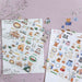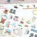 Decorate your notebooks, hand-written letters and more with these charming clear stickers by Japanese illustrator Mariko Fukuoka. Featuring a mix of sticker sizes, this large-size sticker sheet is printed on transparent sticker material so your stickers will blend in well on any page or small item.
