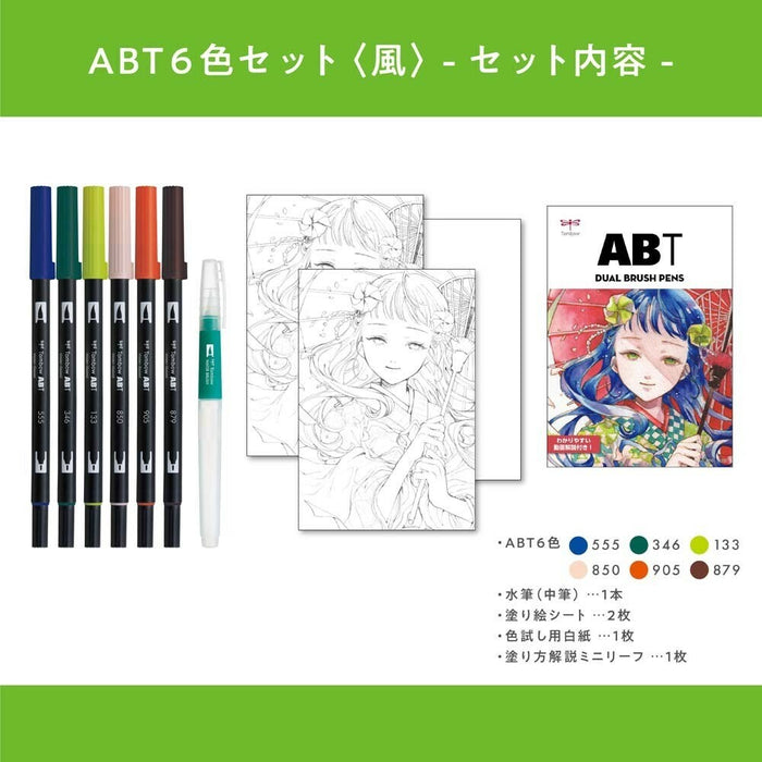 Tombow ABT Dual Brush Pen 6 Colour Set - Manga Illustration - Wind