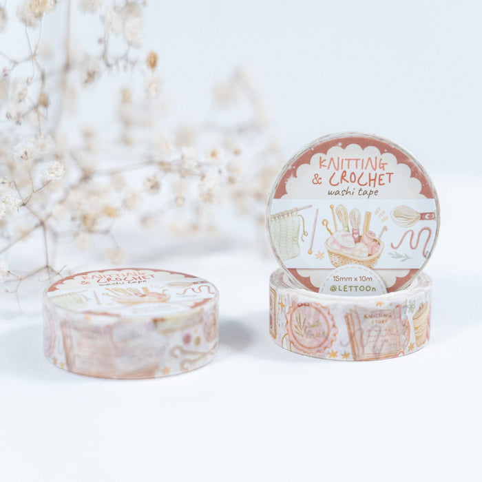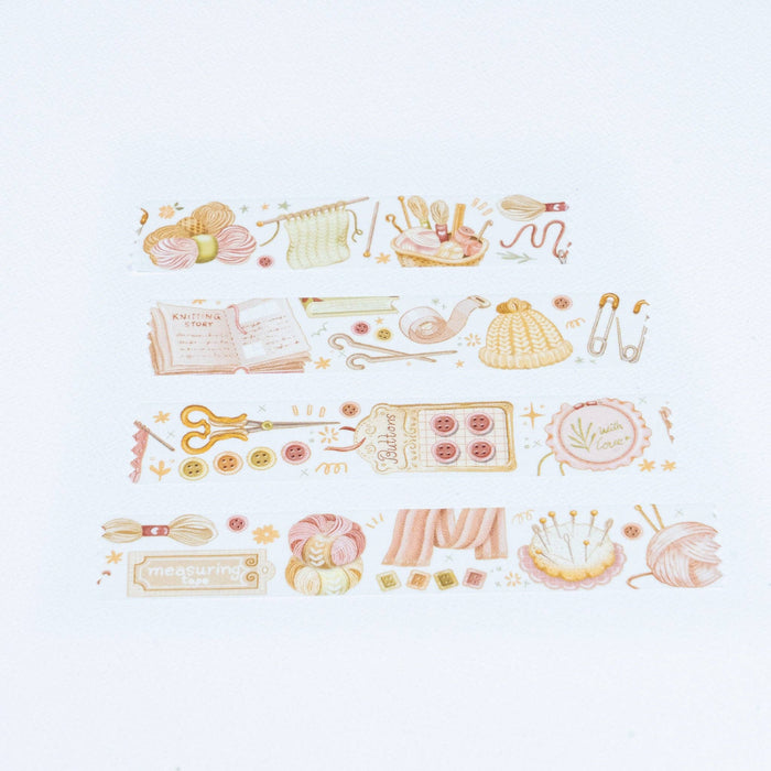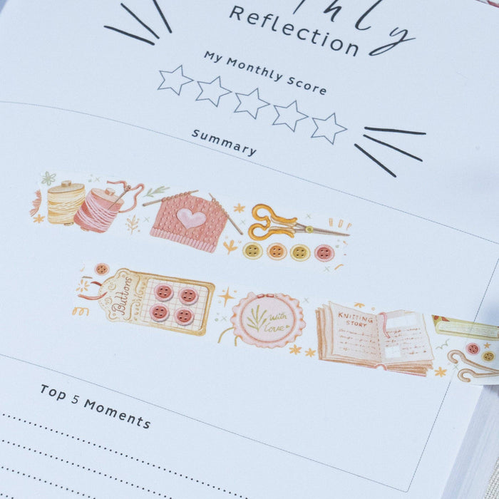 This Knitting & Crochet washi tape will bring creative energy into your special space. The washi tape contains knitting tools, cute buttons, wool clothes, needles, and many more to decorate your bullet journal or planner!