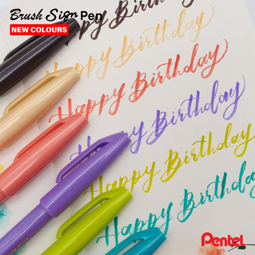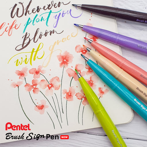 12 new colours! The Pentel Brush Sign Pen is a flexible felt-tip brush pen ideal for brush lettering as it easily creates very thin to thicker lin...