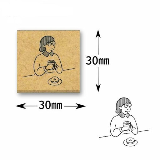 Fudan no Hanko Wood Stamp - Girl / Coffee Time