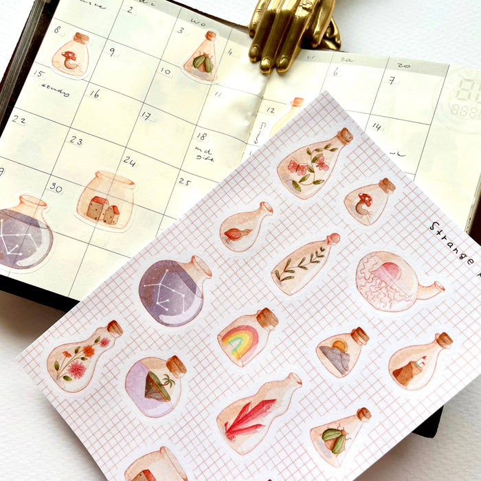 A delightful sheet of stickers from Nikki Dotti Stationery. These stickers are printed on washi paper, making them perfect for collaging and journal decoration due to their semi-transparent nature.