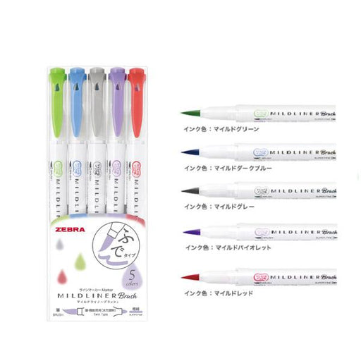 Zebra Mildliner Brush Pen 5 Colour Set - Soft