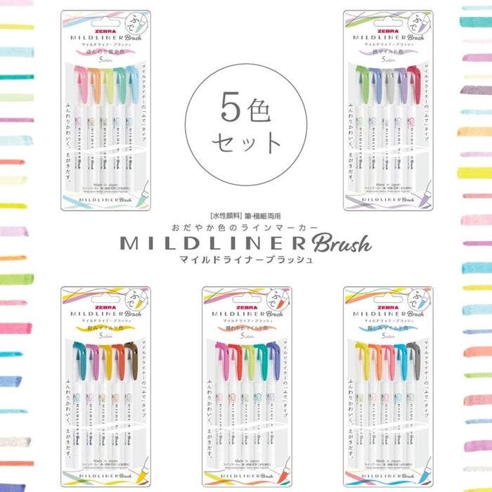 Zebra Mildliner Brush Pen 5 Colour Set - Soft