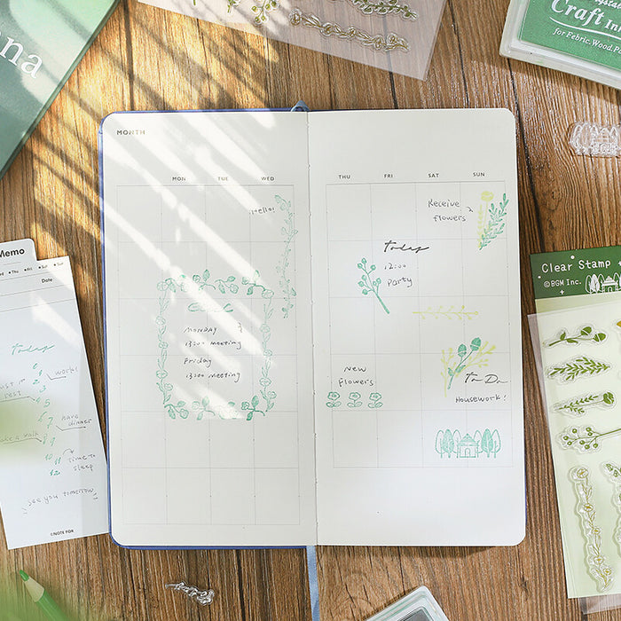 Decorate your planner, calendar or journal pages with this set of clear stamps from BGM Japan.