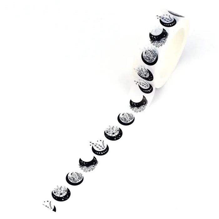 Make a statement with our floral moon washi tape! This versatile tape features striking black and white floral crescent moons that instantly draw the eye. A perfect addition to your craft projects, planner decoration, and more!