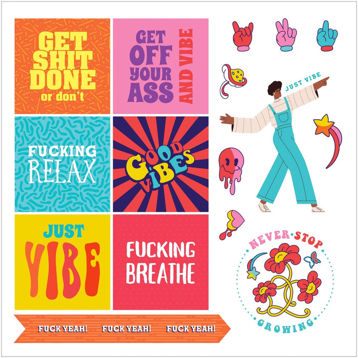 - Say goodbye to bad vibes with these irreverent and inspiring stickers.