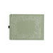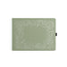 Introducing the Lovely Lilies Heirloom notebook. This letter sized notebook features a unique full cover floral border design, with white stamping on a sage green buckram cover. This design spans the full notebook, with special details on the back cover, spine and front cover.