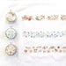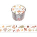 A PET material tape with a transparent background and delicate floral print in subdued tones. The surface of the tape has a matte finish that blends well with paper, making this tape perfect for decorating planners and notebooks.