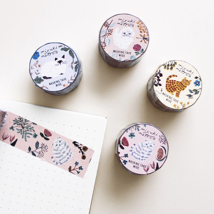 Masking tape with a gorgeous all-over pattern of cats and plants. The wide width makes it perfect for decorating notebooks and journals, wrapping, etc.