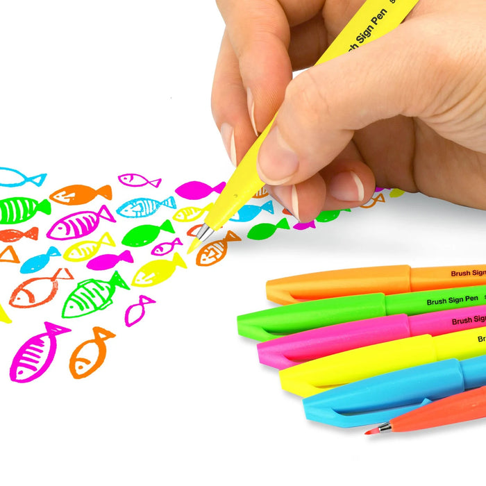 Pentel Arts 'Brush Up!' Brush Pens - Neon Colours 6pk